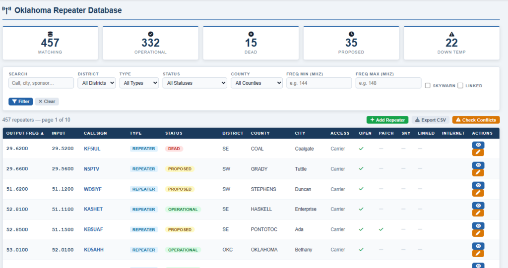 Another major effort underway is the modernization of the Oklahoma Repeater Society Inc. database.